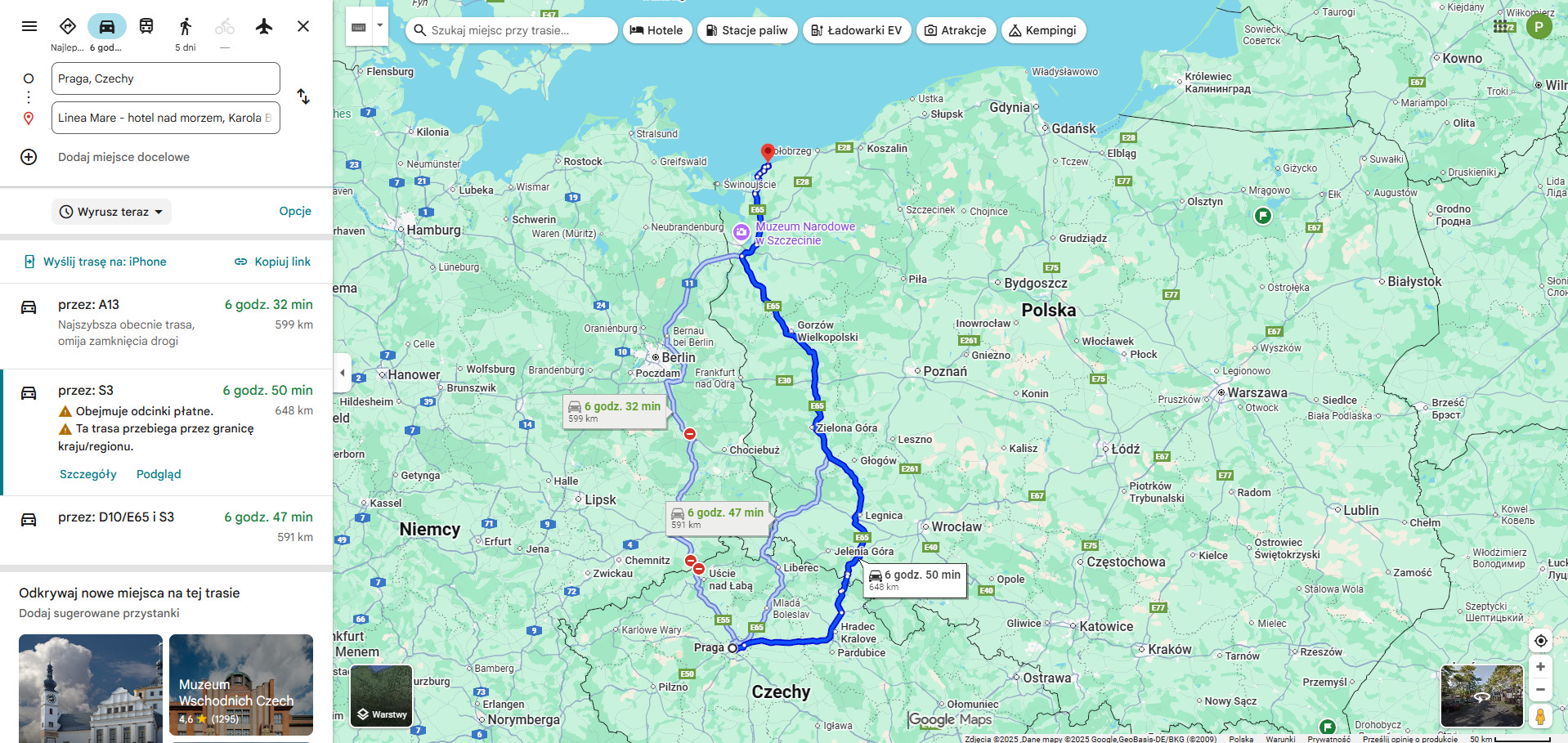 Dlaczego właśnie tak? Po przekroczeniu granicy w Lubawce szybko wjeżdża się na S3, która prowadzi na północ przez Dolny Śląsk i Ziemię Lubuską aż do Pomorza Zachodniego. To trasa o spokojnym rytmie jazdy, z wygodnymi zjazdami i licznymi punktami obsługi podróżnych.
