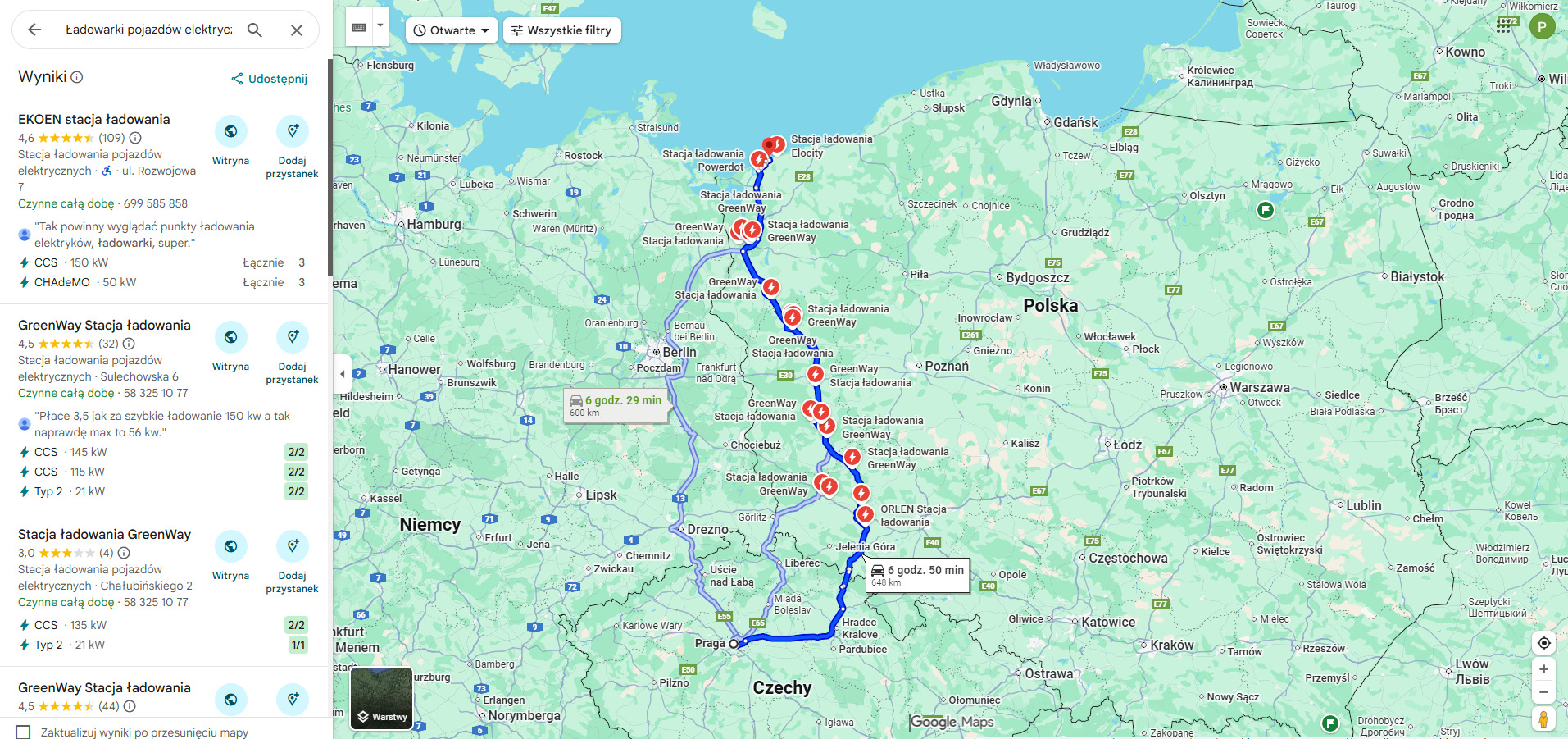 Gęsta sieć szybkich ładowarek przy S3 i węzłach z nią połączonych pozwala zaplanować postój bez presji czasu.