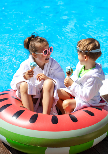 Podgrzewany basen zewnętrzny z płytką częścią dla maluchów i strefą leżaków zapewnia bezpieczną zabawę i relaks. W każdy piątek odbywają się energetyczne pool party, które uwielbiają dzieci i dorośli.